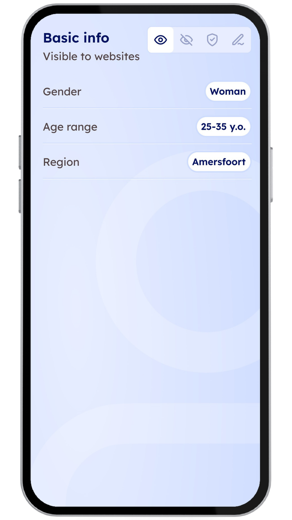 You decide what you want to share. Connected websites can only see anonymous personal data, only during your visit.